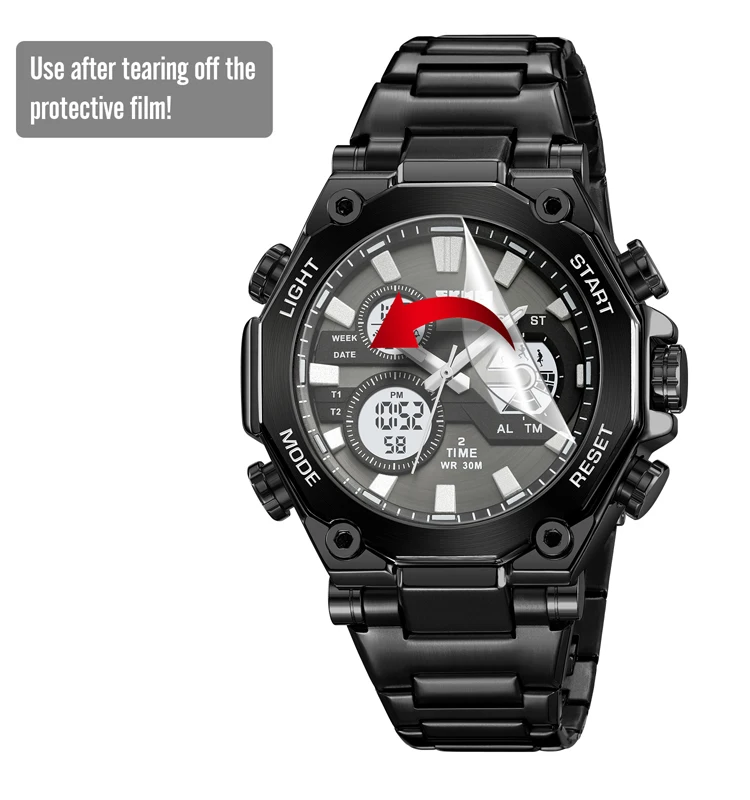 Mov't:Digital Case:alloy(50.5mm*58.2mm) Band:Steel W/P:30 Meters Waterproof Function:2 Time,Chrono,Alarm,Date, Week,Led |