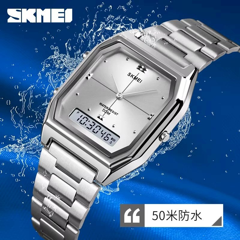 Hot Sale SKMEI Watch Top Brand Luxury Stainless Steel Watch for Men Chrono 3 Time Display Digital Wristwatch Waterproof Montre