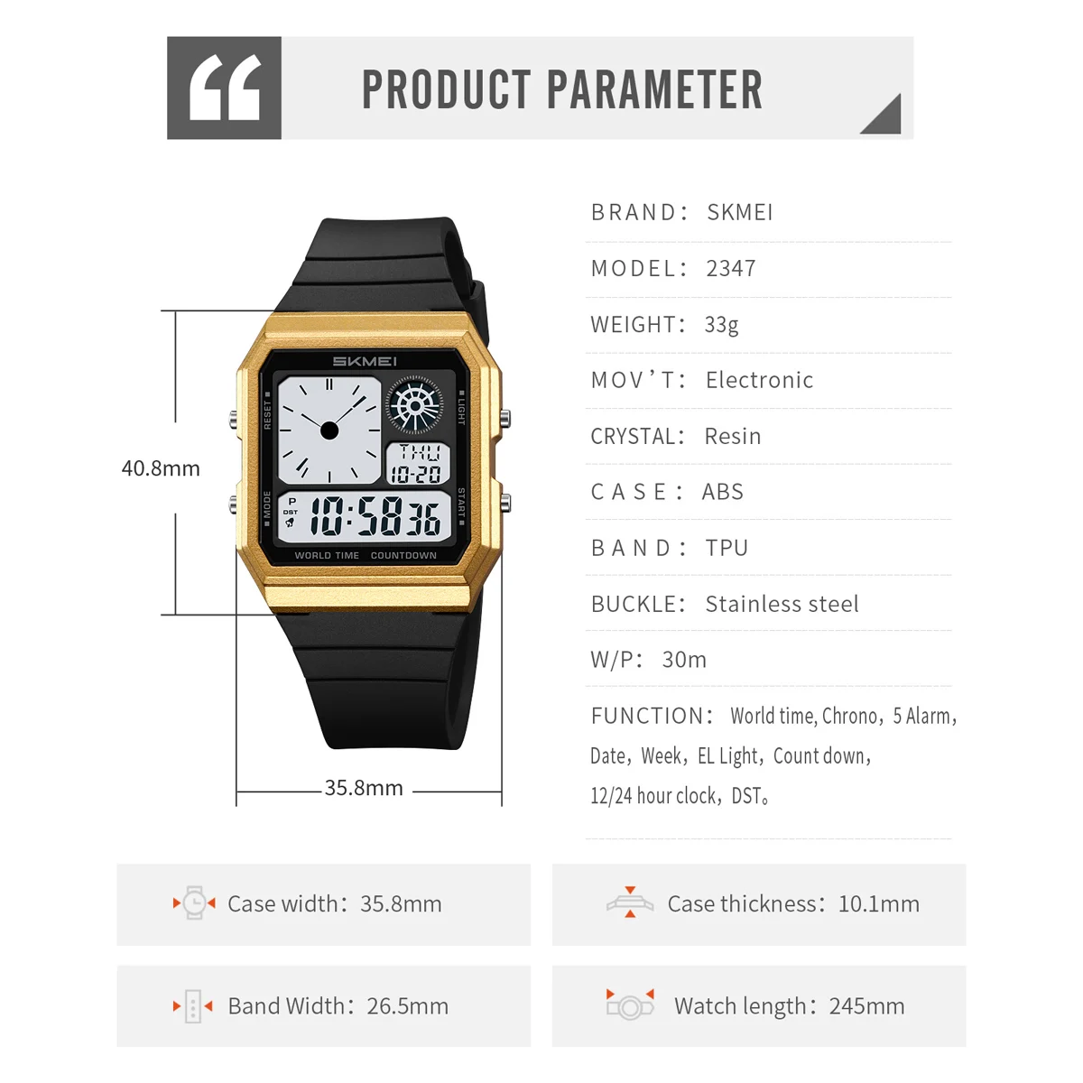 Relogio Skmei 2347 Outdoor Sports Plastic Watches Men 30M Waterproof Countdown Digital Watches Reloj De Mujeres Wristwatches |