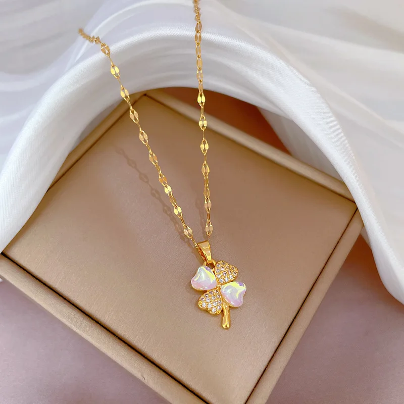 Titanium Steel Lucky Clover Chic Pendant Necklace Romantic Stainless Steel Gift for Women